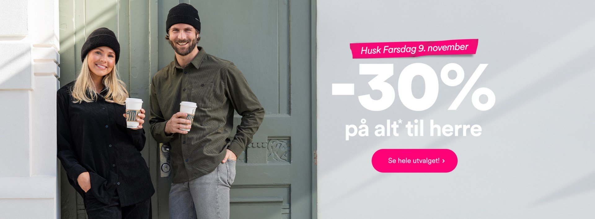*Ved kjøp av min. 2 varer merket FAR30 med samlet verdi på 999,- t.o.m. 09.11. Gjelder ikke Patagonia, New Balance, Replay, UGG og elektronikk.