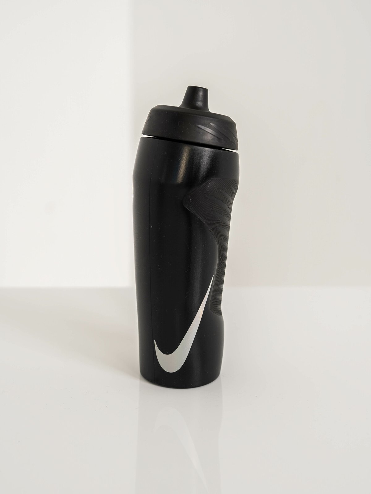 Asymmetrisk design gjør det enkelt å holde flasken med en hånd