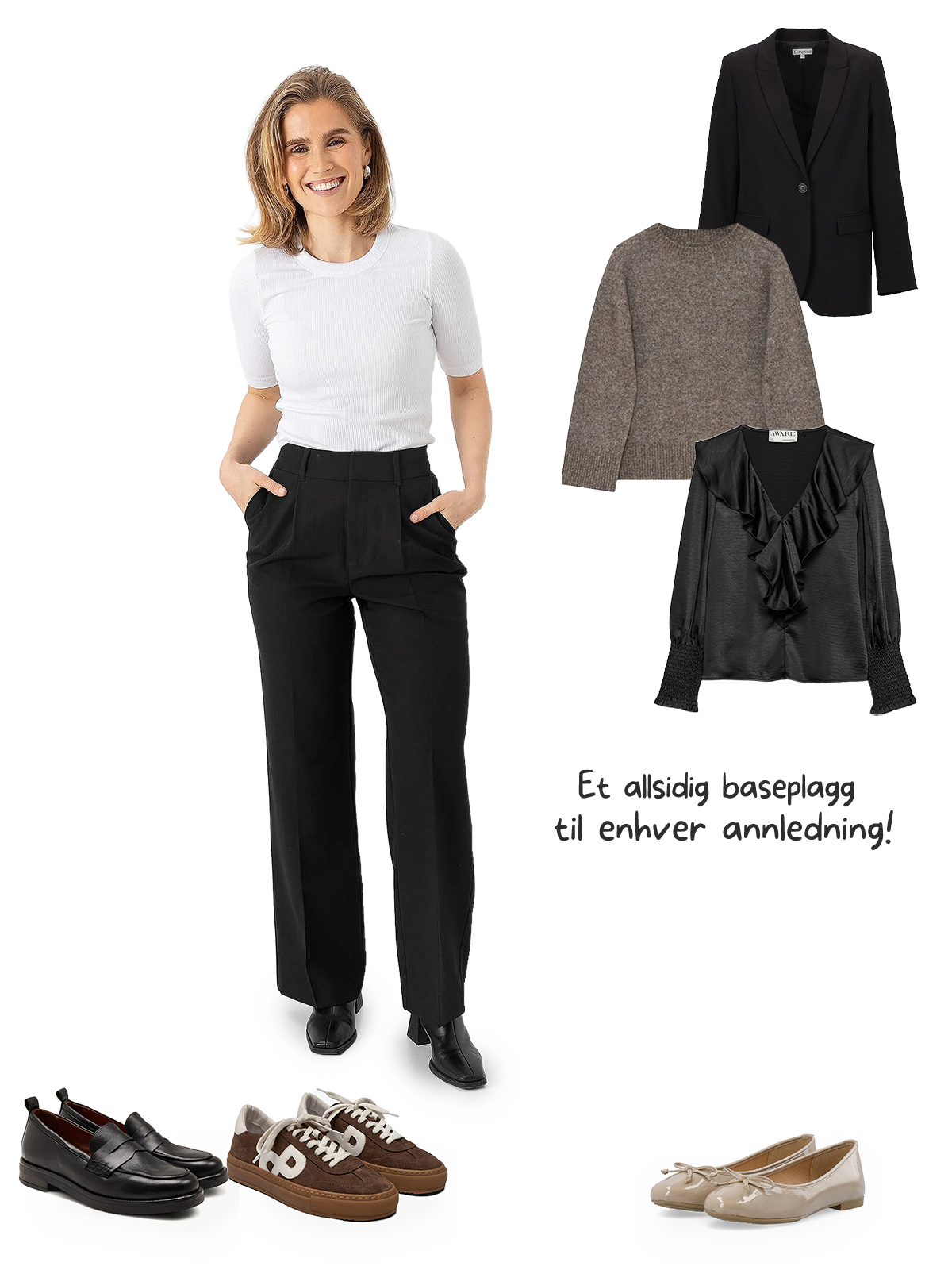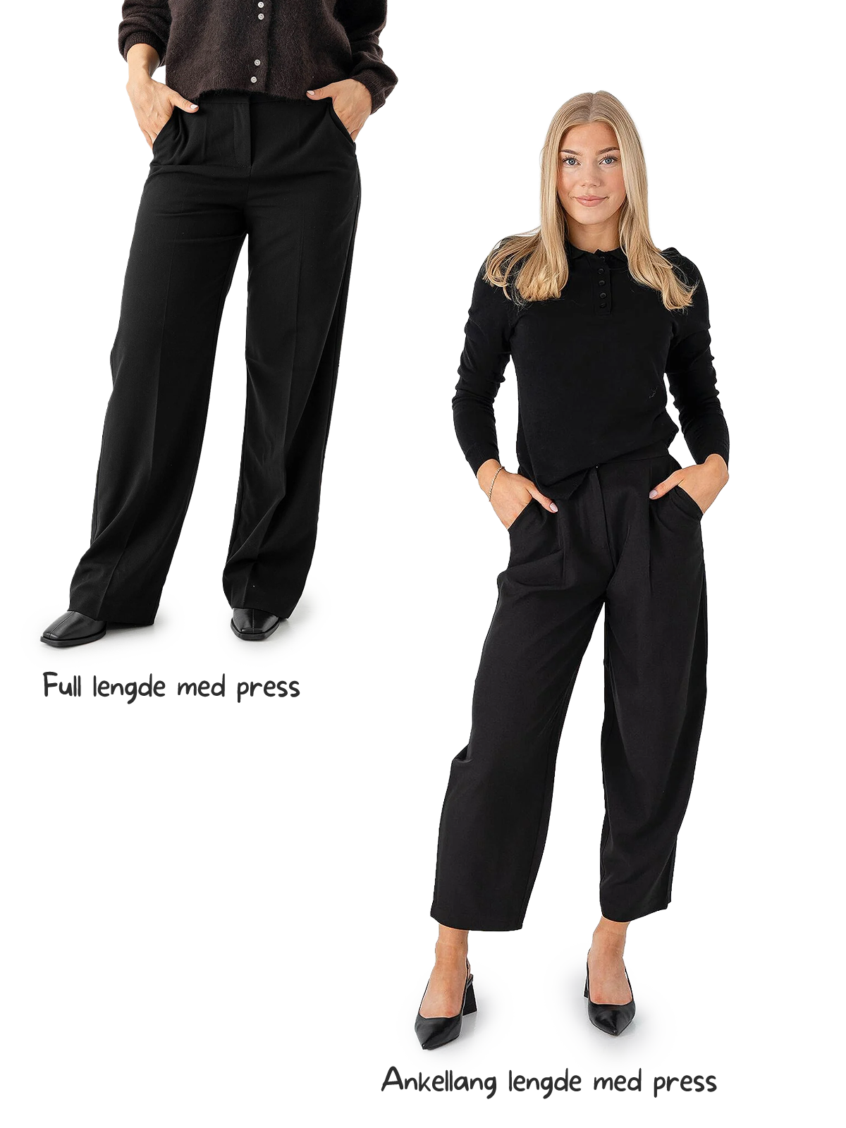 En ankellang dressbukse gir et moderne og lett uttrykk, og passer perfekt til sneakers, loafers eller lave hæler. En dressbukse i full lengde føles mer klassisk og sofistikert, spesielt når den akkurat treffer skoen. Tenk på hvilke sko du bruker mest - og hvilket uttrykk du ønsker.