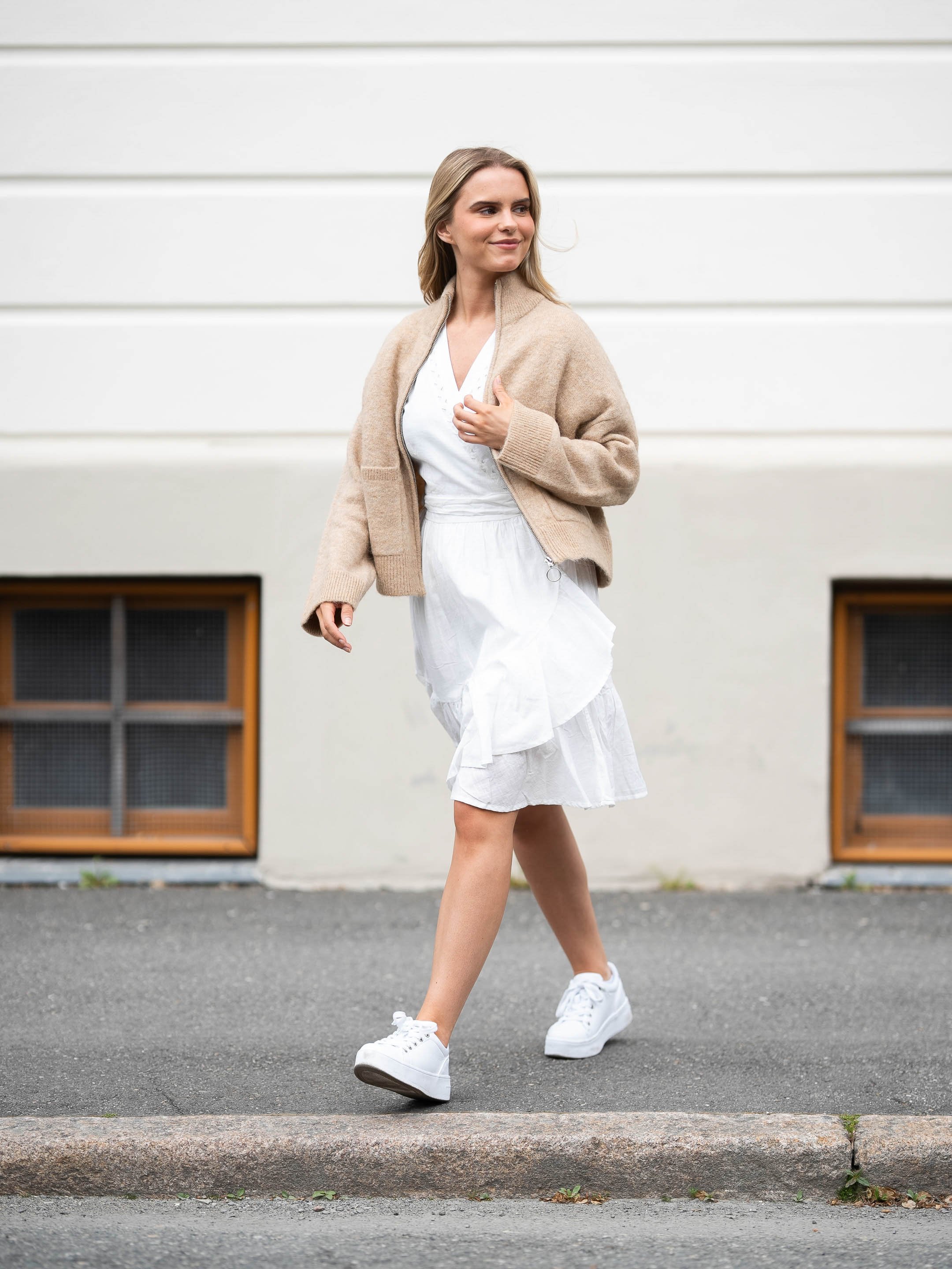 Når det blir kjølig, er det ingen grunn til å pakke bort favorittkjolen. Sleng en cardigan over for en romantisk, men praktisk look som holder deg varm.