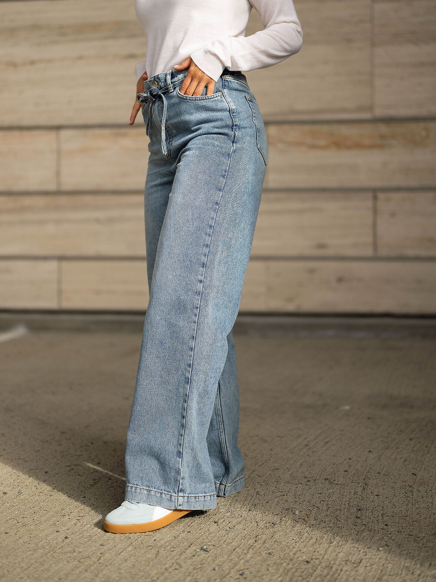 Wide jeans har en løs og bred silhuett hele veien fra hoften og ned. De gir en moderne og kraftfull look som kan tones opp eller ned med tilbehør og sko. Wide jeans passer spesielt godt til deg som liker å leke med volum og ønsker en edgy vri på antrekket.