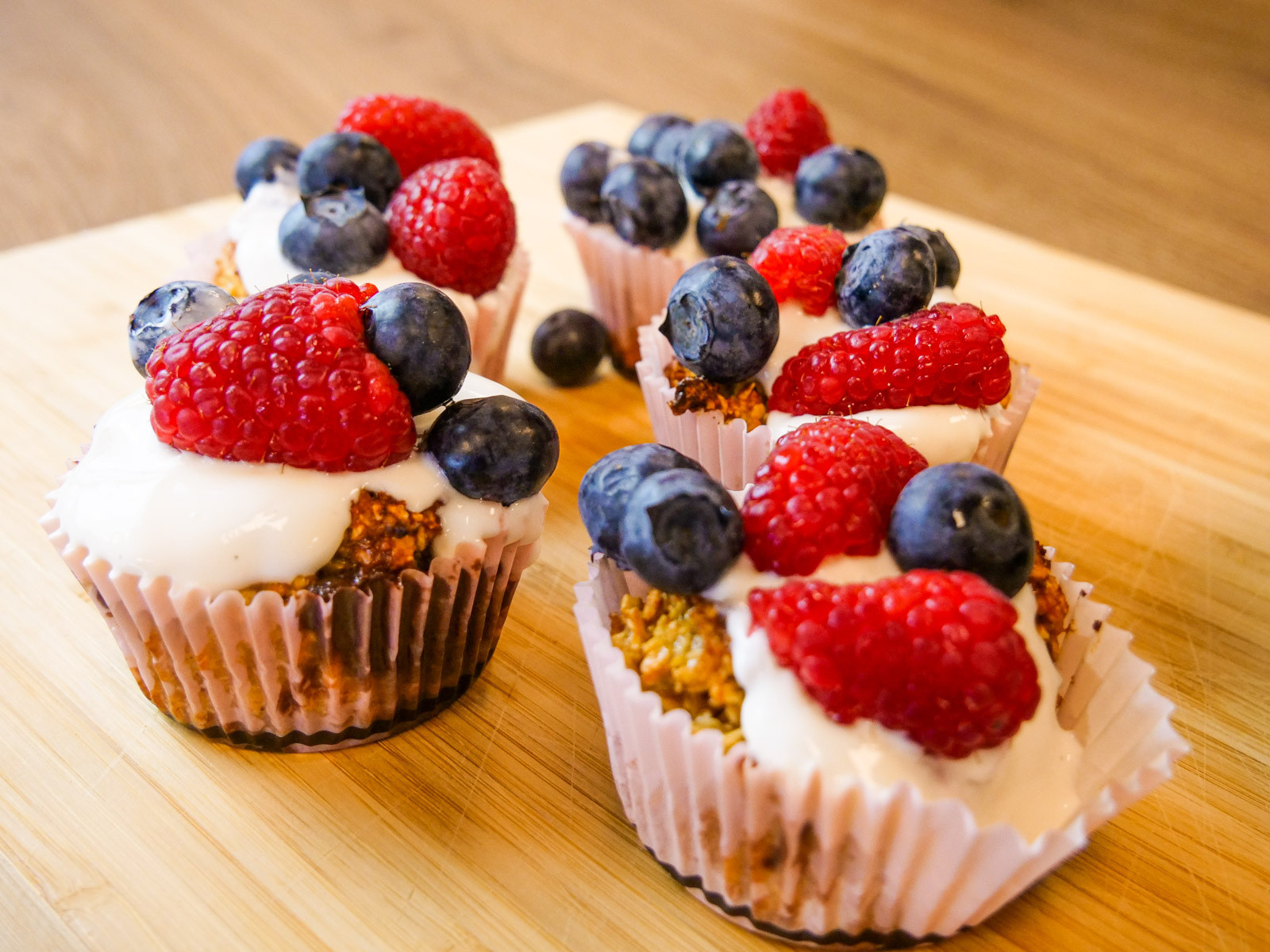 ♥ La muffinsene avkjøles litt før du topper med vaniljekesam og bær. Så er det bare å NYTE!