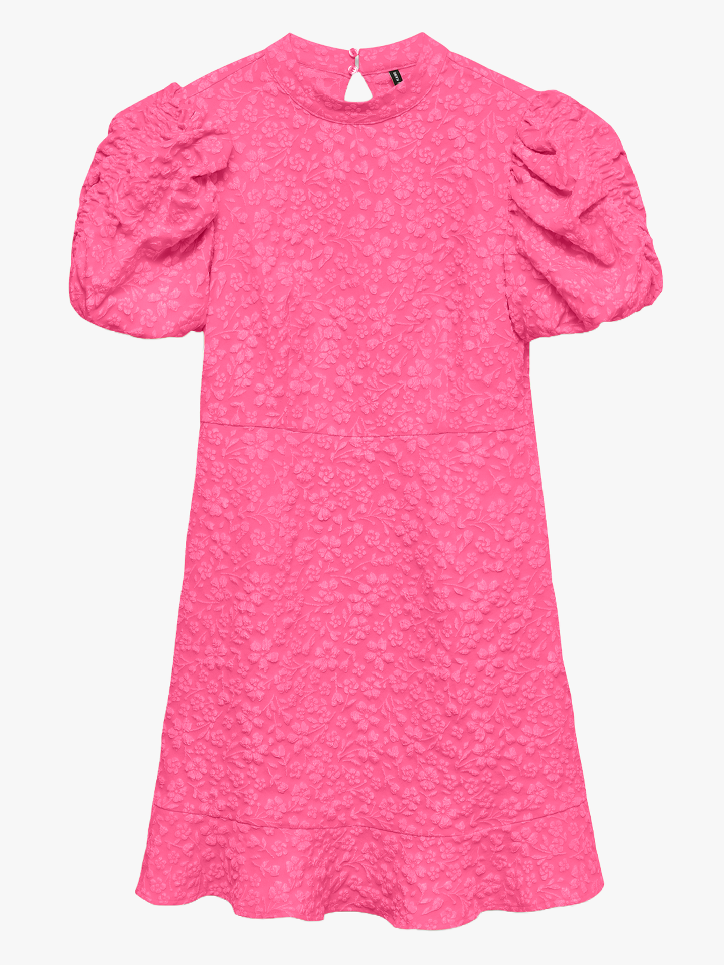 Denne kjolen gir antrekket et løft når anledningen krever det lille ekstra. Den har høy hals og korte puffermer som skaper en markert og feminin silhuett. Jacquardmønsteret tilfører struktur og dybde, mens den regulære passformen gjør den komfortabel å bruke gjennom hele kvelden. Style den med hæler og tilbehør for et gjennomført uttrykk.