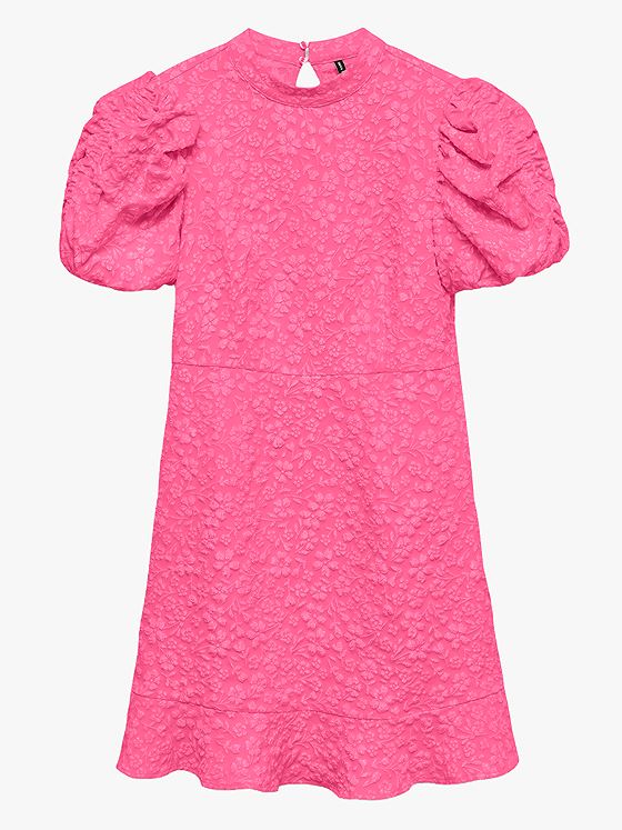Kjole med jacquardmønster og puffermer