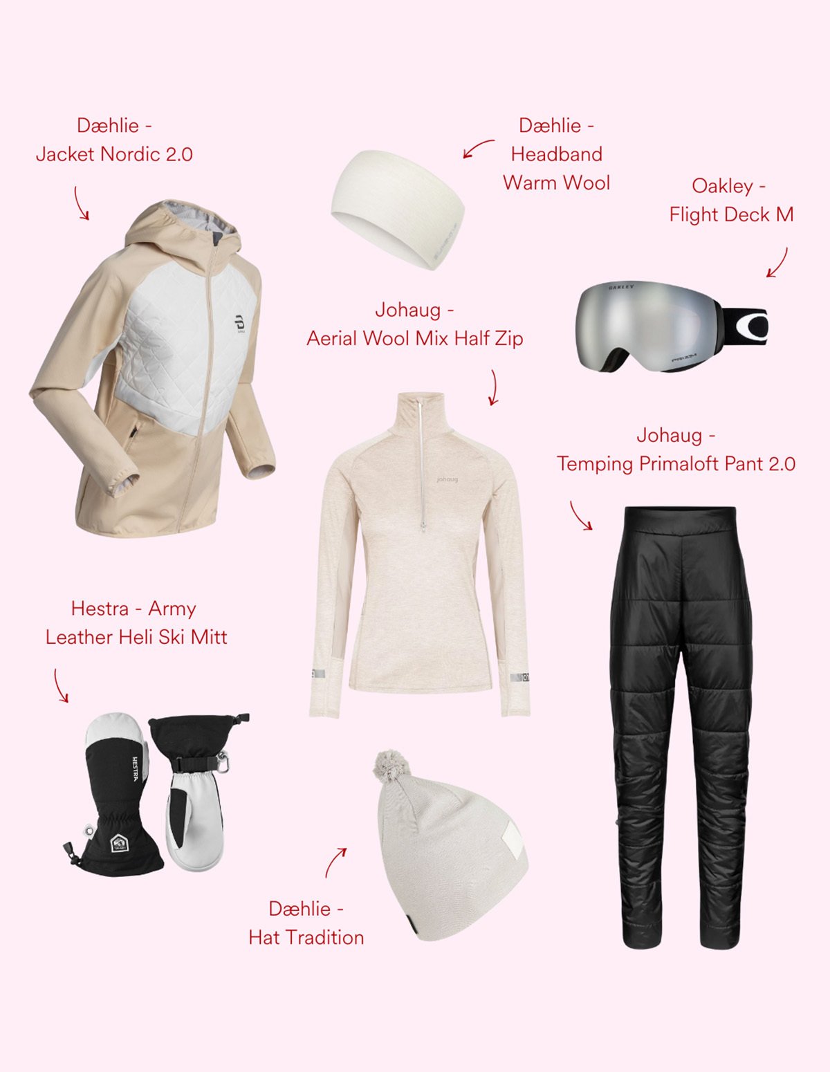 Gi bort varme og funksjon i julegave. Denne looken er satt sammen for aktive dager i skiløypa, med isolerende lag, tekniske ytterplagg og tilbehør som holder henne komfortabel fra start til siste stavtak. En gjennomført ski-look som kombinerer ytelse, stil og ekte vinterglede.