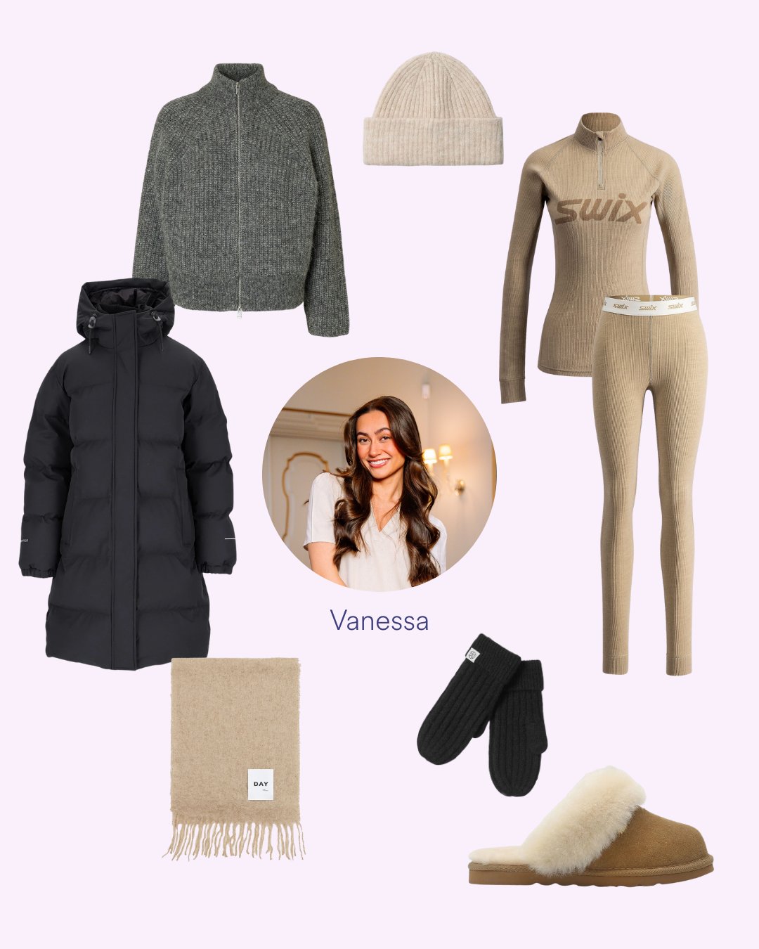 Vanessa har satt sammen en nydelig ønskeliste av vinterens beste kjøp: myke kvaliteter, varme lag, lune accessories og tidløse plagg som passer hele sesongen. En god miks av komfort og stil - perfekt for både hverdagen, turer og rolige innedager.