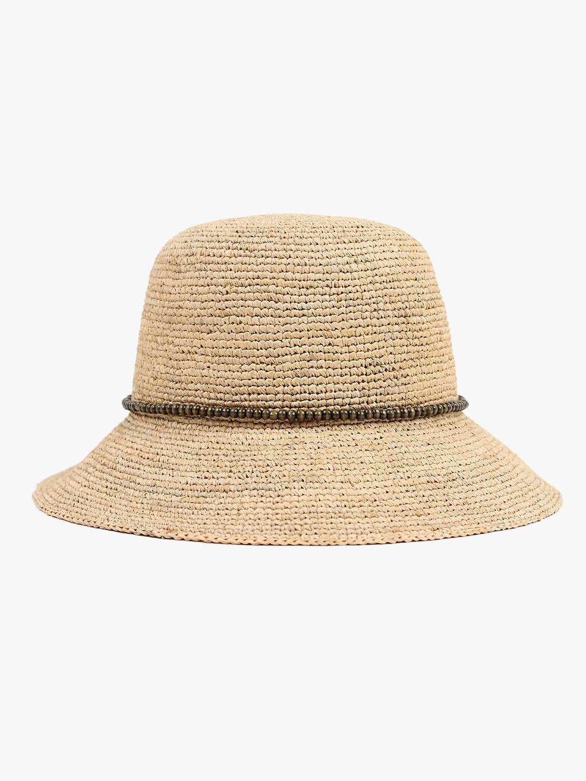 Denne bøttehatten er et stilfullt tilbehør som gir antrekket et sommerlig og gjennomført preg. Den myke fasongen og lette kvaliteten gjør den behagelig å bruke hele dagen, samtidig som den skjermer fint mot solen. De dekorative perlene tilfører det lille ekstra og gjør hatten perfekt til både strand, byliv og feriedager.
