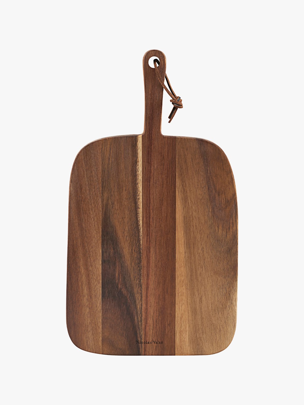 Dette skjærebrettet løfter både hverdagsmiddag og små serveringer. Bruk det til tapas, ost eller når du skjærer opp nybakt brød. Det er laget i akasietre som gir et naturlig og solid uttrykk på kjøkkenet. Håndtaket gjør det enkelt å flytte og bruke. Den brune lærsnoren er både praktisk og en fin detalj når du henger det opp og har det lett tilgjengelig.