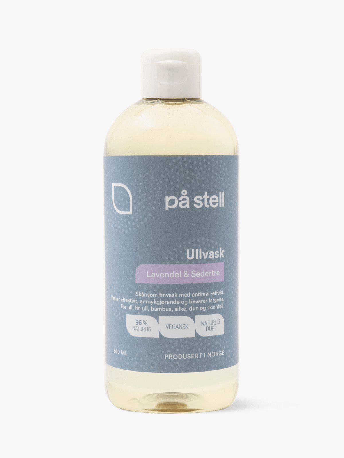 Ullvask Lavendel & Sedertre er et mildt og effektivt vaskemiddel for ull, silke, bambus, dun og skinnfell. Den skånsomme formelen bevarer farger, mykhet og kvalitet i fibrene – med en behagelig, naturlig duft av lavendel og sedertre. Inneholder økologiske oljer med antimøll-effekt og 96 % ingredienser av naturlig opprinnelse.