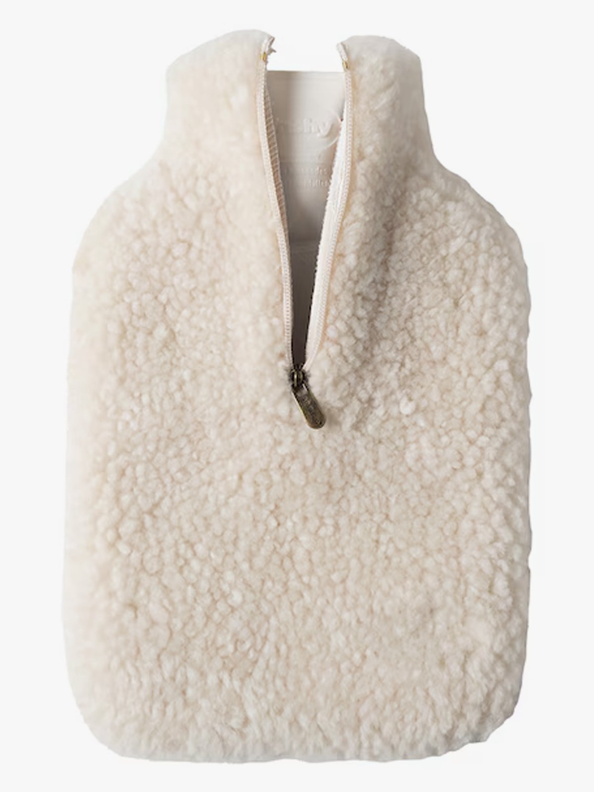 Varmeflaske med pose av saueskinn utenpå